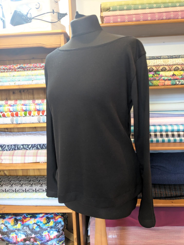Beautiful ribbed jersey in black. Soft with some weight so perfect for autumn/winter layering pieces.